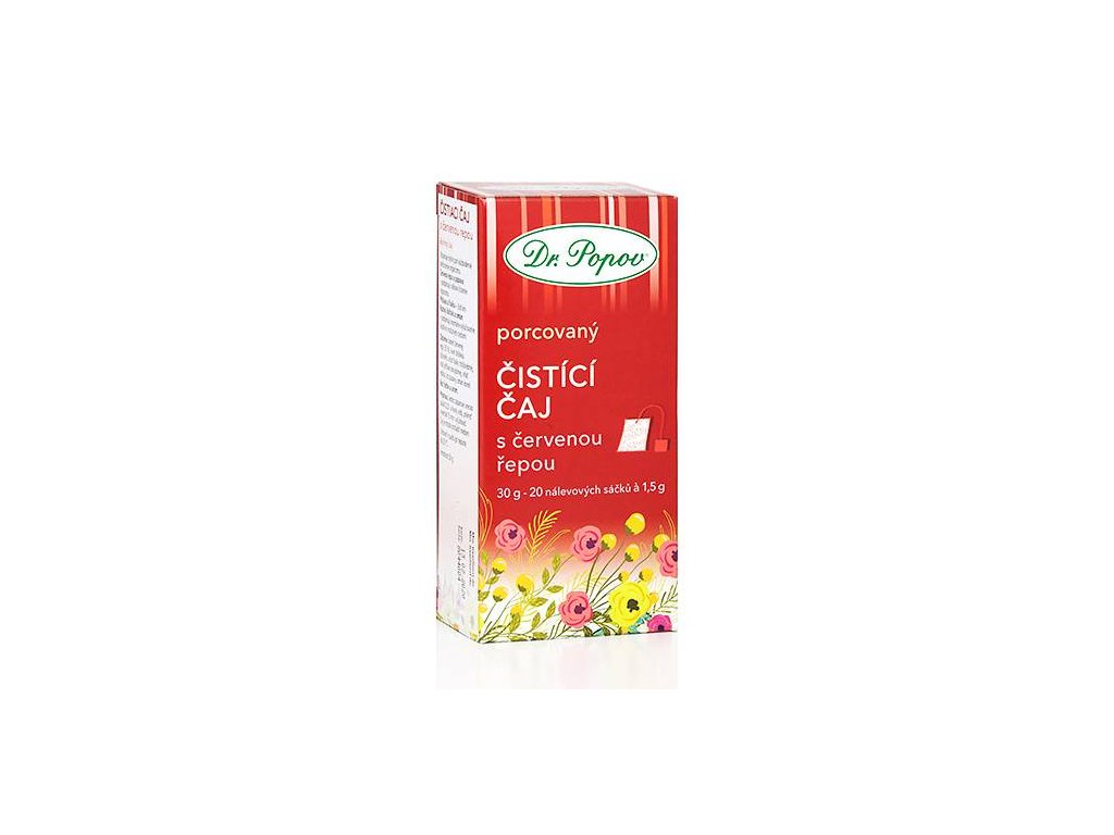 Kdy pít Čistící čaj s červenou řepou: Čistící čaj s červenou řepou je ideální pro každodenní pití. Obsahuje skvělé byliny, které napomáhají pročištění organizmu: pampeliška se tradičně užívá při očistě těla, stimuluje trávení, podporuje zdravou činnost jater a působí antioxidačně. Červená řepa dodává tělu řadu důležitých vitamínů a minerálních látek, kopřiva a maceška čistí krev, růžový ibišek a oman podporují zdravé vylučování škodlivin močovými cestami.Pokud máte raději čaje v sypané podobě, máme ho pro vás také v této variantě. Jak Čistící čaj s červenou řepou připravit: Příprava tohoto čaje je poměrně snadná. Stačí 1 nálevový sáček přelít 0,25 l vroucí vody, přikrýt a nechat zhruba 15 minut vylouhovat. Čaj můžete přisladit medem. Pro dostatečné pročištění doporučujeme pít čaj alespoň 2x denně. Složení: červená řepa kořen (35 %), růžový ibišek květ, maceška nať, kopřiva nať, řepík nať, pampeliška list, oman kořen Ostatní informace: Skladovat v suchu při teplotě do 25 °C. Čaj je bez barviv a aromat. Obsahuje 20 nálevových sáčků.Doplňkové parametry