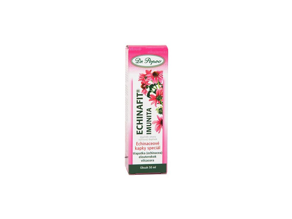 Kdy se vám budou bylinné kapky Echinafit® imunita hodit: Echinafit® imunita (Echinaceové kapky speciál) v sobě spojují sílu 3 bylin, doporučovaných na podporu imunitního systému.Třapatka je významná bylina pocházející ze Severní Ameriky, kde byla využívána indiány v tradiční medicíně. Ve výrobku je použita směs třapatky nachové (Echinacea purpurea) a třapatky bledé (Echinacea pallida). Echinacea je vynikající pro přirozenou obranyschopnost (imunitní systém) a podporuje zdravé fungování dýchacích cest.Eleuterokok (čertův kořen) je pro své účinky nazýván sibiřským žen-šenem. Patří do skupiny adaptogenů, tj. látky, které mají komplexní účinky a napomáhají adaptaci organizmu na vnější podmínky. Eleuterokok pomáhá obnovovat energii, podporuje přirozenou obranyschopnost a přispívá k celkovému zdraví.Vilcacora roste v tropických lesích amazonské džungle. Do bylinných přípravků se využívá vnitřní kůra, která významně přispívá k fungujícímu imunitnímu systému. Jak bylinné kapky Echinafit® imunita správně užívat: Echinafit® používejte ideálně třikrát denně po 20 kapkách. Tinkuturu můžete užívat samotnou nebo ji nakapat do vody, čaje či jiného nápoje. Před použitím doporučujeme protřepat. Denní doporučená dávka (60 kapek) obsahuje 90 mg třapatky nachové natě, 90 mg třapatky bledé kořene, 60 mg eleuterokoku a 60 mg vilcacory kůry. Jak jsou bylinné kapky vyráběny? Pečlivě vybrané atestované byliny macerujeme v jemném 60% potravinářském lihu za studena – jedná se o způsob výroby, který je generacemi ověřený jako nejlepší, protože líh je pro extrakci ideální a kapky pak mají vysokou koncentraci účinných látek. Líh navíc doplňujeme vodou, takže v kapkách působí dva činitelé a vyluhuje se tedy i více účinných látek. Využíváme odstřeďování za vysoké rychlosti otáček, abychom z bylin získali více účinných látek. Dlouhá macerace mikronizovaných (jemně rozemletých) bylin v lihu je velmi důležitá a tento proces nelze porovnávat s prostým rozmícháním extraktu.Všechny směsné bylinné kapky vycházejí z originálních receptur, které zaručují vysokou účinnost výsledné tinktury.Všechny extrakty jsou notifikovány Ministerstvem zdravotnictví ČR. Složení bylinných kapek Echinafit® imunita: voda, jemný kvasný líh (alk. 40% obj.), třapatka nachová nať, třapatka bledá kořen, eleutorokok, vilcacora kůra Ostatní informace: Echinafit® imunita není určen pro děti, těhotné a kojící ženy. Není určen jako náhrada pestré stravy. Nepřekračujte doporučenou denní dávku. Uchovejte v suchu při teplotě 5 až 25 °C.Doplňkové parametry
