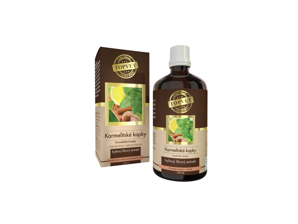 Popis Karmelitské kapky - bylinný lihový extrakt Karmelitské kapky (Karmelitské kvapky) - tato bylinná kompozice je vhodný podpůrný prostředek pro normální trávení a funkce žaludku (produkce plynu, chuť k jídlu). Doporučujeme zejména při těžkosti po jídle. Obsah: 1 dávka(1 – 2 ml) Denní dávka(3 x denně) % DDDDenní doporučená dávka Meduňka/ Medovka stand. extrakt 34 – 68 mg 102 – 240 mg Není stanoveno Skořice kůra/ škorica kôra 7 – 14 mg 21 – 42 mg Není stanoveno Citronová kůra/ kôra 7 – 14 mg 21 – 42 mg Není stanoveno Muškátový ořech/ orech stand. extrakt 2 – 4 mg 6 – 12 mg Není stanoveno Vitamín C 3 – 6 mg 9 – 18 mg 11 – 22,5 % DDD Složení / Zloženie: voda, jemný líh/ jemný lieh (minimálně 35 obj. % alk./ethanolu), meduňka lékařská/ medovka lekárska (Melissa officinalis), skořice kůra/škorica kôra, citronová kůra/citrónová kôra, muškát ořech/orech, vitamín C (kyselina L-askorbová) Doporučené dávkování: 15 - 30 kapek při pocitu plnosti a těžkosti po jídle. Tinkturu je možné přidat do studeného nápoje. Nepřekračujte doporučené dávkování.Odporúčané dávkovanie: 15 - 30 kvapiek pri pocite plnosti a ťažkosti po jedle. Tinktúru je možné pridať do studeného nápoja. Neprekračujte odporúčané dávkovanie. Skladování: Uchovávejte v suchu při pokojové teplotě. Neskladovat na přímém slunci a v mrazu.Skladovanie: Uchovávajte v suchu pri izbovej teplote. Neskladujte na priamom slnku a v mraze. Všeobecná upozornění: Doplněk stravy. Není vhodné pro děti do tří let, těhotné a kojící matky. Ukládat mimo dosah dětí! Nenahrazuje pestrou stravu.Všeobecné upozornenia: Výživový doplnok. Nie je vhodné pre deti do troch rokov, tehotné a dojčiace matky. Ukladať mimo dosahu detí! Nenahrádza pestrú stravu. Výrobce: Green idea s.r.o., Vodova 40, Brno, 61200, tel.: 541 232 435 Doplněk stravy - definice dle zákona Doplněk stravy je potravina, jejímž účelem je doplňovat běžnou stravu a která je koncentrovaným zdrojem vitaminů a minerálních látek nebo dalších látek s nutričním nebo fyziologickým účinkem, obsažených v potravině samostatně nebo v kombinaci, určená k přímé spotřebě v malých odměřených množstvích. Účinnost přípravku a zajištění kvality nejsou při schvalování doplňků stravy posuzovány. Nicméně výrobce nesmí deklarovat nepravdivá tvrzení o účinku přípravku (zákaz klamání spotřebitele). Deklarované účinky musí být schopen kdykoliv doložit. Doplňky stravy musí splňovat veškeré platné normy kladené na potraviny. Jejich dodržování kontroluje Státní zemědělská a potravinářská inspekce (SZPI). Doplňky stravy nesmějí být na obalu označeny léčebnou indikací (ani nesmějí vyléčení či prevenci chorob naznačovat), což je vyhrazeno pouze pro léčiva. Smějí být ale uváděny příznivé účinky na zdravotní stav uživatele - tzv. zdravotní tvrzení. Totéž platí i pro reklamu. Rovněž se nesmí uvádět ani naznačovat, že vyvážená a různorodá strava nemůže poskytnout dostatečné množství živin.Doplňkové parametry