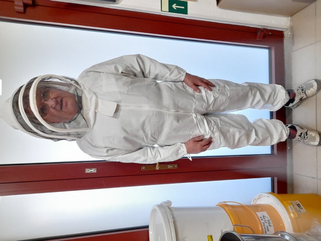Včelařská kombinézas kuklou (kosmonaut) Chrání celou postavu mimo chodidel a dlaní. Včelařská kombinéza s kuklou je vyrobena z materiálů, které eliminují ohrožování včelaře včelím bodnutím jednak silou a kvalitou materiálů, ale také svou barvou. Rukávy a nohavice jsou zakončeny stahovací gumou, takže se včela nemůže dostat pod kombinézu. Kukla je připnutá k včelařské kombinéze zipem po celém jeho obvodu. Otvor, který vzniká mezi zipy u krku, je chráněn páskem látky se suchým zipem, takže na kombinéze neexistuje místo, kudy by mohla včela proniknout ke včelaři.Doplňkové parametry