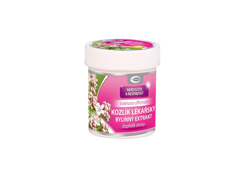Popis Kozlík lékařský bylinný extrakt - Valeriana officinalis Nervozita a nespavost Doplněk stravy Stres, nervozita a poruchy spánku mohou být vyvolávajícími činiteli vážných onemocnění. Kozlík přispívá ke klidnému a spokojenému spánku a k normální činnosti nervové soustavy (kognitivní funkce). Doporučuje se užívat k relaxaci v případě neklidu, úzkosti a nervozity. Podporuje normální činnost kardiovaskulárního a trávicího traktu. Obsah: 1 tobolka Denní dávka 1-2 tobolky % DDD Denní doporučená dávka Kozlík lékařský kořen 100 mg 100-200 mg Není stanoveno Vitamín C 10 mg 10-20 mg 12,5-25 % DDD Složení: želatina (tobolka), Kozlík lékařský štandardizovaný extrakt (Valeriana officinalis), vitamín C (kyselina L-askorbová), Mikrokrystalická celulóza (plnidlo). Doporučené dávkování: 2 x denně 1 tobolka nebo 1 – 2 tobolky 30 minut před spánkem. Podávejte v jedné fázi 4 týdny, pak přerušit na 2 týdny. Nepřekračujte doporučené denní dávkování. Skladování: Uchovávejte v suchu při pokojové teplotě. Neskladovat na přímém slunci a v mrazu. Všeobecná upozornění: Doplněk stravy. Není vhodné pro děti do 3 let, těhotné a kojící ženy. Nenahrazuje pestrou a vyváženou stravu. Ukládat mimo dosah dětí! Nepřekračujte doporučené denní dávkování. Obsah: 60 tobolek Výrobce: Green idea s.r.o., Vodova 40, Brno, 61200, tel.: 541 232 435e-mail: topvet@topvet.cz, www.topvet.cz Země původu: Česká republika Doplněk stravy - definice dle zákona Doplněk stravy je potravina, jejímž účelem je doplňovat běžnou stravu a která je koncentrovaným zdrojem vitaminů a minerálních látek nebo dalších látek s nutričním nebo fyziologickým účinkem, obsažených v potravině samostatně nebo v kombinaci, určená k přímé spotřebě v malých odměřených množstvích. Účinnost přípravku a zajištění kvality nejsou při schvalování doplňků stravy posuzovány. Nicméně výrobce nesmí deklarovat nepravdivá tvrzení o účinku přípravku (zákaz klamání spotřebitele). Deklarované účinky musí být schopen kdykoliv doložit. Doplňky stravy musí splňovat veškeré platné normy kladené na potraviny. Jejich dodržování kontroluje Státní zemědělská a potravinářská inspekce (SZPI). Doplňky stravy nesmějí být na obalu označeny léčebnou indikací (ani nesmějí vyléčení či prevenci chorob naznačovat), což je vyhrazeno pouze pro léčiva. Smějí být ale uváděny příznivé účinky na zdravotní stav uživatele - tzv. zdravotní tvrzení. Totéž platí i pro reklamu. Rovněž se nesmí uvádět ani naznačovat, že vyvážená a různorodá strava nemůže poskytnout dostatečné množství živin.Doplňkové parametry