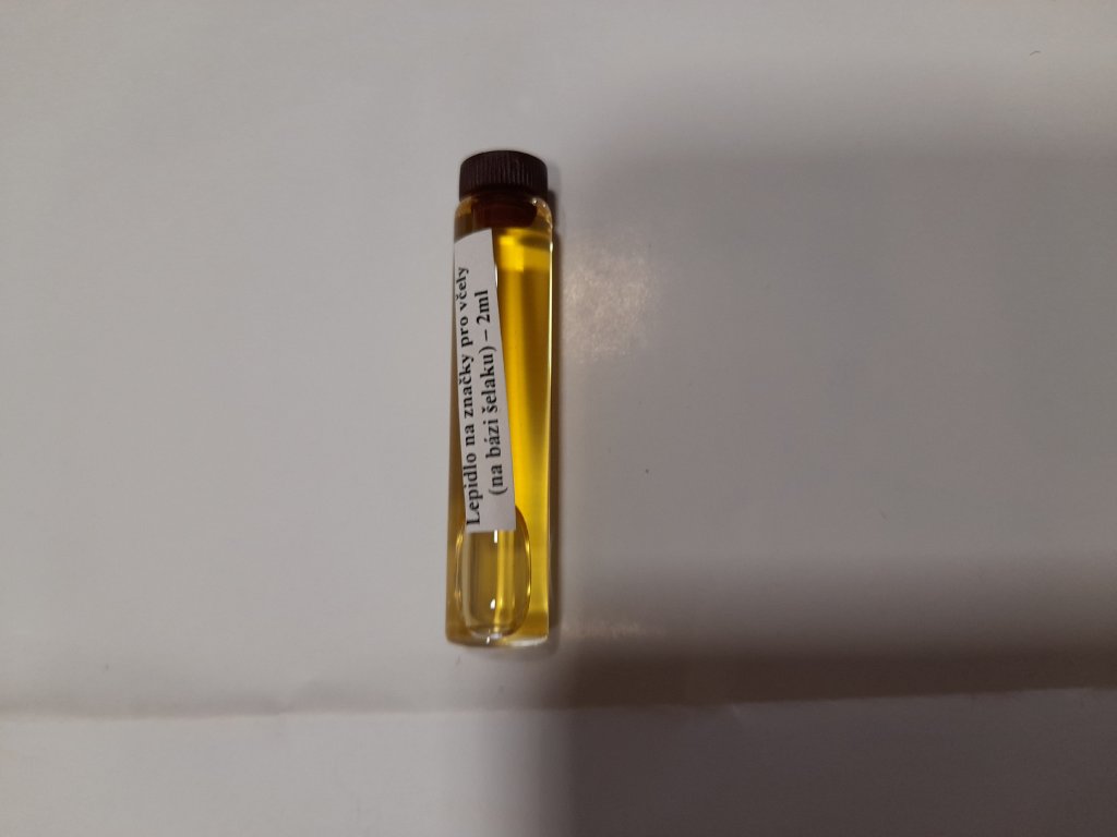 Lepidlo na opalitové značky na bázi šelaku Lepidlo na opalitové značky pro včelí matky na bázi šelaku. Barevné značky na včelí matky se dají lepit na hruď matek osvědčeným šelakovým roztokem. Šelak je jedinečná přírodní pryskyřice, je bez zápachu, zdravotně nezávadný, biologicky odbouratelný. Roztok je v dobře uzavřené lahvičce trvanlivý. Pokud by časem zhoustnul, dá se ředit lihem. Balení: 2 ml Standardní věty o nebezpečnosti: H226 Hořlavá kapalina a páry. H315 Dráždí kůži. H317 Může vyvolat alergickou kožní reakci. Pokyny pro bezpečné zacházení: Veškeré kontaminované části oděvu okamžitě svlékněte. Necítíte-li se dobře, vyhledejte lékařskou pomoc/ošetření. Zamezte vdechování par. Přeneste osobu na čerstvý vzduch a ponechte ji v poloze usnadňující dýchání. Pokud přetrvávají příznaky, vyhledejte lékařskou pomoc. PŘI STYKU S KŮŽÍ: Jemně omyjte velkým množstvím vody a mýdla, při podráždění vyhledejte lékařskou pomoc. PŘI ZASAŽENÍ OČÍ: Několik minut opatrně vyplachujte vodou. Vyjměte kontaktní čočky, jsou-li nasazeny a pokud je lze vyjmout snadno. Pokračujte ve vyplachování. Vyhledejte lékařskou pomoc.Doplňkové parametry