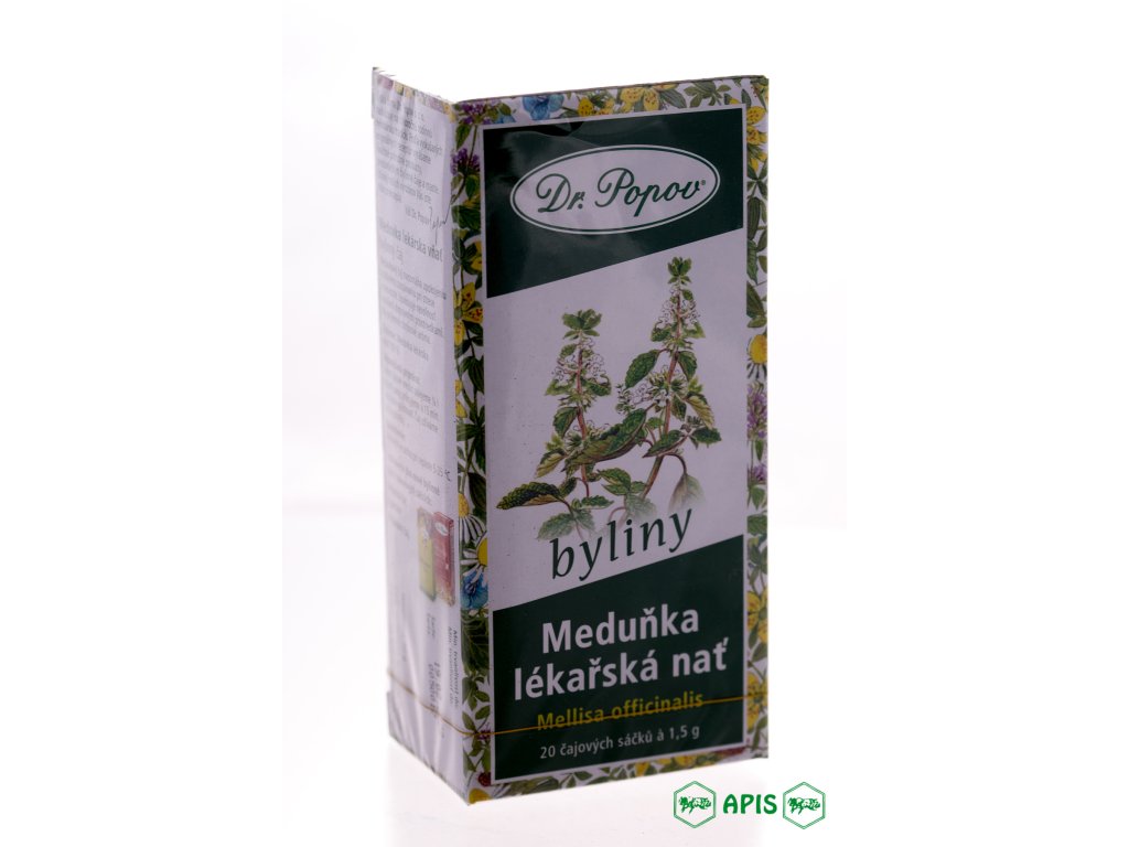 Meduňka lékařská nať 30 g (20 x 1,5 g) Popis Meduňkový čaj napomáhá zklidnění a dobrému usínání při stresu a nervozitě. Zklidňuje nevolnost vyvolanou dopravními prostředky. Má příjemné citrónové aroma. Složení: Meduňka lékařská nať 100 % (Mellisa officinalis). Doporučená příprava: 1 čajový sáček přelijeme 1/4 l vroucí vody, přikryjeme a 15 minut necháme louhovat. Čaj užíváme dle potřeby. Upozornění: Uchovejte v suchu při teplotě 5-25°C.Diskuze