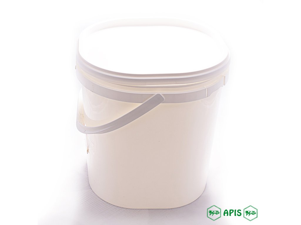 Plastový kbelík na med o objemu 11 L což je na asi 14kg medu. Nádoba je vyrobena z potravinářského plastu s těsně přiléhajícím víkem. Výška 26cm.Doplňkové parametry