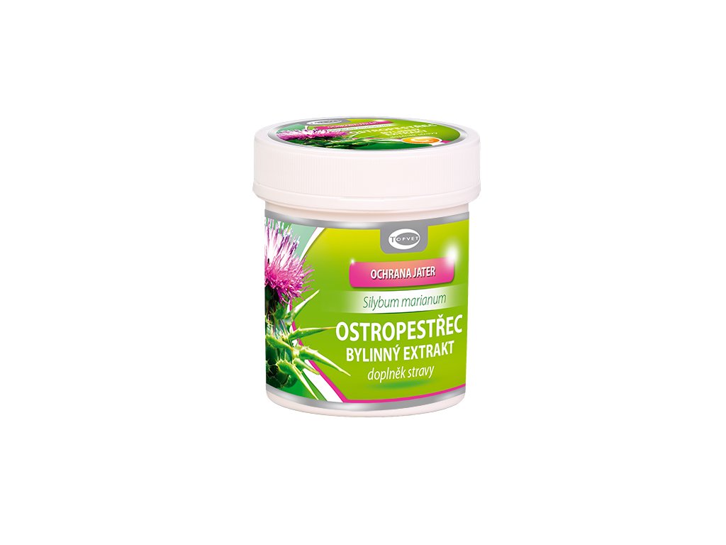 Popis Ostropestřec / Pestrec bylinný extrakt - Silybum Marianum Ochrana jater Doplněk stravy / Doplnok stravy Ostropestřec mariánský obsahuje velké množství aktivních látek (zejména silymarinu), které se s úspěchem používají jako prostředek pro podporu normální činnost jaterní tkáně a trávení. Chrání buňky a tkáně před oxidativním stresem. Pomáhá udržovat normální činnost srdce a přispívá k normální hladině krevního cukru. Pomáhá detoxikaci. Podporuje přirozenou obranyschopnost. Obsah: 1 tobolka Denní dávka 1 - 2 tobolky % DDD Denní doporučená dávka Ostropestřec standardizovaný extrakt 150 mg 150 – 300 mg Není stanoveno Vitamín C 100 mg 100 – 200 mg 125 – 250 % DDD Složení / zloženie: želatina (tobolka/kapsula), Ostropestřec mariánský štandardizovaný extrakt (Silybum Marianum), vitamín C (kyselina L-askorbová), mikrokrystalická/mikrokryštalická celulóza (plnidlo). Doporučené dávkování / odporúčané dávkovanie: 1-2 x denně 1 tobolka/1-2 x denne 1 kapsula. Nepřekračujte doporučené denní dávkování/neprekračujte odporúčané denné dávkovanie. Dodržujte cyklus podání 4 týdny a 1 týden vysadit/ Podávajte v jednej fáze 4 týždny a 1 týžden vysadiť. Skladování: Uchovávejte v suchu při pokojové teplotě. Neskladovat na přímém slunci a v mrazu.Skladovanie: Uchovávajte v suchu priizbovej teplote. Neskladovať na priamom slnku a v mraze. Všeobecná upozornění: Doplněk stravy. Není vhodné pro děti do 3 let, těhotné a kojící ženy. Nenahrazuje pestrou a vyváženou stravu. Ukládat mimo dosah dětí!Všeobecné údaje: Doplnok stravy. Nie je určený deťom do 3 rokov, tehotným a dojčiacim ženám. Nenahrádza pestrú stravu. Ukladať mimo dosahu detí! Obsah: 60 tobolek/kapsúl Výrobce / výrobca: Green idea s.r.o., Vodova 40, Brno, 61200, tel.: 541 232 435e-mail: topvet@topvet.cz, www.topvet.cz Země původu / zem pôvodu: Česká republika Doplněk stravy - definice dle zákona Doplněk stravy je potravina, jejímž účelem je doplňovat běžnou stravu a která je koncentrovaným zdrojem vitaminů a minerálních látek nebo dalších látek s nutričním nebo fyziologickým účinkem, obsažených v potravině samostatně nebo v kombinaci, určená k přímé spotřebě v malých odměřených množstvích. Účinnost přípravku a zajištění kvality nejsou při schvalování doplňků stravy posuzovány. Nicméně výrobce nesmí deklarovat nepravdivá tvrzení o účinku přípravku (zákaz klamání spotřebitele). Deklarované účinky musí být schopen kdykoliv doložit. Doplňky stravy musí splňovat veškeré platné normy kladené na potraviny. Jejich dodržování kontroluje Státní zemědělská a potravinářská inspekce (SZPI). Doplňky stravy nesmějí být na obalu označeny léčebnou indikací (ani nesmějí vyléčení či prevenci chorob naznačovat), což je vyhrazeno pouze pro léčiva. Smějí být ale uváděny příznivé účinky na zdravotní stav uživatele - tzv. zdravotní tvrzení. Totéž platí i pro reklamu. Rovněž se nesmí uvádět ani naznačovat, že vyvážená a různorodá strava nemůže poskytnout dostatečné množství živin.Doplňkové parametry