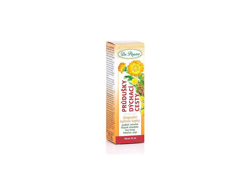 Kdy se vám budou bylinné kapky Průdušky – dýchací cesty hodit: Originální bylinné kapky Průdušky – dýchací cesty obsahují 6 vynikajících bylin, které jsou prospěšné pro správnou funkci našeho dýchacího systému.Podběl příznivě podporuje přirozenou obranyschopnost a přispívá k tomu, aby zůstaly horní cesty dýchací zdravé. Anýz a měsíček se podílí na správné činnosti dýchacího systému, bez černý podporuje imunitní a dýchací systém, navíc hraje roli při vylučování a pročištění organismu. Lišejník islandský osvěžuje tělo, napomáhá činnosti dýchacího aparátu a jako ostatní zmiňované byliny posiluje přirozenou imunitu. Poslední užitou bylinou v kapkách je lékořice. Působí jako antioxidant, který pozitivně působí na naši obranyschopnost i dýchací systém. Jak bylinné kapky Průdušky – dýchací cesty správně užívat: Užívání bylinných kapek je komfortní. Stačí 3 x denně užívat 20 kapek tinktury. Tinkturu je možno nakapat i do nápoje, např. vody, čaje. Doporučená denní dávka (60 kapek) obsahuje po 17 mg obsažených bylin. Jak jsou bylinné kapky vyráběny? Pečlivě vybrané atestované byliny macerujeme v jemném 60% potravinářském lihu za studena – jedná se o způsob výroby, který je generacemi ověřený jako nejlepší, protože líh je pro extrakci ideální a kapky pak mají vysokou koncentraci účinných látek. Líh navíc doplňujeme vodou, takže v kapkách působí dva činitelé a vyluhuje se tedy i více účinných látek. Využíváme odstřeďování za vysoké rychlosti otáček, abychom z bylin získali více účinných látek. Dlouhá macerace mikronizovaných (jemně rozemletých) bylin v lihu je velmi důležitá a tento proces nelze porovnávat s prostým rozmícháním extraktu.Všechny směsné bylinné kapky vycházejí z originálních receptur, které zaručují vysokou účinnost výsledné tinktury.Všechny extrakty jsou notifikovány Ministerstvem zdravotnictví ČR. Složení bylinných kapek voda, jemný kvasný líh (alk. 40% obj.), podběl list, měsíček květ, anýz plod, lékořice, lišejník islandský stélka, bez černý květ100 g výrobku obsahuje à 2,37 g všech jmenovaných bylin. Ostatní informace: Nepřekračujte doporučenou denní dávku. Není určeno jako náhrada pestré stravy. Výrobek není určen pro děti, těhotné a kojící ženy. Ukládejte mimo dosahu dětí. Před použitím protřepat, lehký zákal není na závadu. Uchovejte v suchu při teplotě 5 – 25 °C.Doplňkové parametry