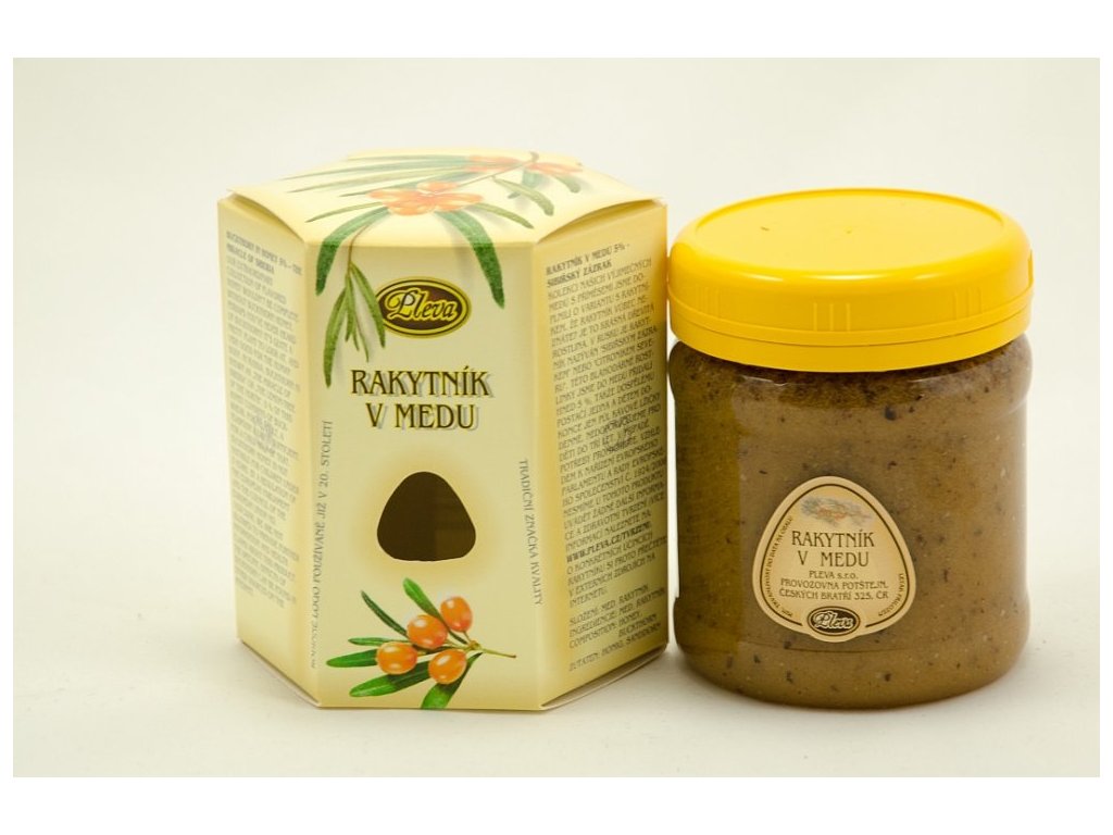 Pastovaný med obsahuje rakytníkový extrakt, šťávu z vylisovaných bobulí rakytníku řešetlákového, který podporuje přirozenou obranyschopnost organizmu. Popis Med je vzácně vyvážený, čistě přírodní produkt, který by neměl chybět v naší stravě. Med Terezia Company pochází z jedné z největších včelařských farem v ČR, která prodává med pouze od českých včel. Výroba medu je pod stálým veterinárním dozorem a odpovídá normám EU. Pastovaný med je klasický květový med, ze kterého se pomocí řízené krystalizace stane med pastovaný. Během procesu krystalizace se hrubé krystaly v medu mechanicky rozruší a tím vznikne hladká pastovitá konzistence. Pastovaný med se nesmí skladovat v teple a nesmí přijít do styku se slunečním zářením. Vlivem tepla by se z pastovaného medu stal opět tekutý med. Složení Med květový pastovaný 98,8% Rakytník řešetlákový (Hippophae rhamnoides, extrakt 1%) Zázvor lékařský (Zingiber officinale, sušený 0,2 %) Dávkování Užívejte 1 čajovou lžičku 1x denně. Balení 250 g Upozornění Med byste nikdy neměli přidávat do horkého čaje, aby se neznehodnotily účinky medu ani přidaných surovin. Přílišná konzumace má mírně projímavé účinky. Skladujte při teplotě do 25 °C a relativní vlhkosti 70 %. Med je citlivý na změny teploty a může změnit konzistenci bez vlivu na kvalitu. Chraňte před mrazem. Další sdělení V naší nabídce naleznete také další medy a přípravky s rakytníkem řešetlákovým. Vzhledem k nařízení Evropského parlamentu a Rady evropského společenství č. 1924/2006 nesmíme u tohoto produktu uvádět žádné další informace a zdravotní tvrzení. O konkrétních účincích propolisu si proto přečtěte v externích zdrojích na internetu.