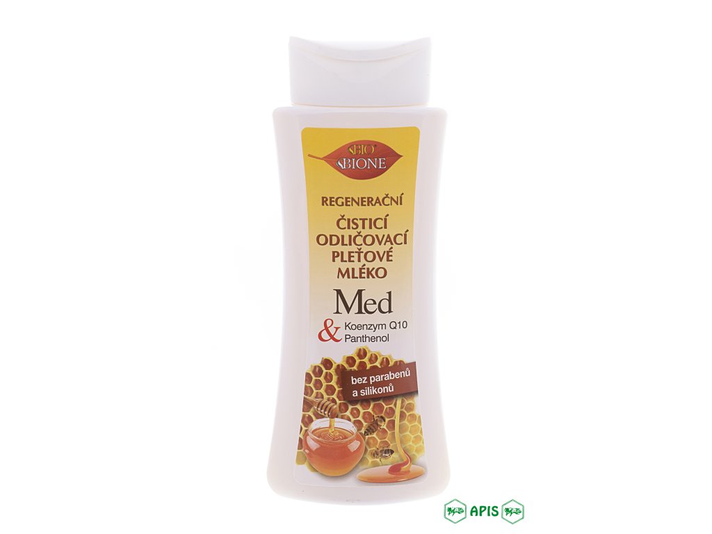 Čistící a odličovací pleťové mléko s medem je vhodné ke každodennímu odlíčení a hloubkovému vyčištění pleti. Mléko je vyrobeno jako velmi lehký, moderní emugel, s minimem dráždivých emulgátorů. S přídavkem pravého včelího medu. Med obsahuje enzymy a vitamíny. Je známo, že již Kleopatra používala med jako zkrášlovací pleťovou masku. Přípravek je doplněn o zklidňující allantoin. Koenzym Q10 optimalizuje přirozené buněčné dýchání, tím podporuje tvorbu kolagenu a elastinu, potlačuje tvorbu vrásek. Použití: Na odličovací tampon naneste mléko a opakovaným otíráním pleť vyčistěte. Pro dokonalé dočištění a vyživení pleti použijte následně pleťové tonikum BIONE s medem. Přítomný koenzym Q10 je oblíbenou složkou se známou protivráskovou účinností, med pokožku zjemňuje, glycerin a panthenol jsou známé hydratační složky. Řada Bione Med+Q10 je určena pro normální, suchou, zralou a citlivou pleť. Jedná se o produkty v bio kvalitě s přídavkem pravého včelího medu, propolisu a mateří kašičky. Vysoký obsah antioxidantů (resveratrol a vitamín E) zpomaluje stárnutí pleti a vznik vrásek vlivem volných kyslíkových radikálů. Panthenol a glycerin hydratují. Allantoin, mateří kašička, med a koenzym Q10 účinně regenerují a vyživují pleť. Q10 je protivráskově aktivní a optimalizuje buněčné dýchání. Vitamíny a bambucké máslo pleť zvláčňují, zjemňují a vyživují. Krémy Bione jsou vyrobeny na bázi lipofilní akrylátové matrice. Jsou výjimečně jemné, nedráždivé, lehce roztíratelné a snadno vstřebatelné. Bio kosmetika značky Bione obsahuje: ▪ suroviny a materiály převážně z obnovitelných přírodních zdrojů▪ snadno biologicky odbouratelné suroviny bez nežádoucích vlivů na přírodu a bez nebezpečných reziduí poškozujících životní prostředí▪ suroviny bezpečné pro zdraví uživatelů▪ jednoduché a snadno vyrobitelné suroviny bez významnějšího vlivu na životní prostředí v průběhu jejich výrobního procesu▪ jednoduché a zároveň účinné receptury omezující nadbytečnou spotřebu chemických produktů (mnohdy bez smysluplných účinků) Bio kosmetika značky Bione neobsahuje: ▪ volné ropné uhlovodíky (parafin, minerální oleje atd.)▪ silikony▪ parabeny▪ tenzidy SLS a SLES▪ ftaláty▪ lanolin▪ obtížně biologicky odbouratelné tenzidy▪ dráždivé parfémy a dráždivé parfémové komponenty▪ neionogenní emulgátory▪ látky způsobující eutrofizaci vod▪ látky způsobujících remobilizaci težkých kovů▪ zvířecí produkty s výjimkou včelího vosku a hydrolyzátu z ovčí vlny▪ obtížně biologicky odbouratelné etoxylované sloučeniny▪ produkty konzervované ionizujícím zářením▪ dle platného závazného nařízení EU je zakázáno provádění jakýchkoliv testů na zvířatech pro účely kosmetiky, toto se vztahuje jak na finální produkty tak i na všechny kosmetické surovinyDoplňkové parametry
