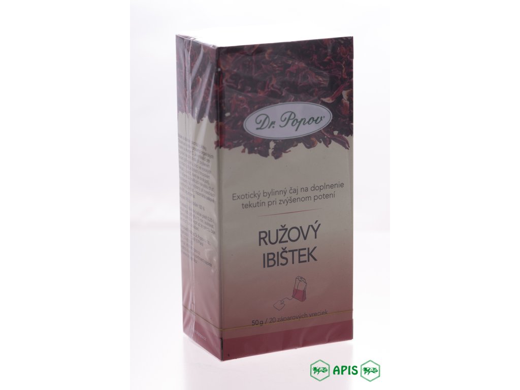 Kdy pít bylinný čaj Růžový ibišek: Bylinný čaj Růžový ibišek je exotický sypaný čaj, ideální pro doplnění tekutin a solí při zvýšeném pocení – např. po sportu, práci při vysokých teplotách, při pobytech v tropickém klimatu nebo pro osoby, které se silně potí. Růžový ibišek obsahuje vysoké procento organických kyselin a vitamín C, podporuje správnou činnost ledvin a odvodňuje organizmus. Je také účinný při zácpě, pomáhá udržovat střeva ve zdravém stavu a působí jako antioxidant.Bylinný čaj Růžový ibišek má příjemnou nakyslou chuť, můžete ho míchat se šípky nebo mátou. Vychlazený čaj je výborný při horečkách a vnitřním přehřátí, kdy napomáhá celkově osvěžit organizmus. Jak bylinný čaj Růžový ibišek připravit a užívat: 1 nálevový sáček přelijeme 0,25 l vroucí vody, přikryjeme a 10 minut louhujeme. Denně je možno vypít až 1 litr tohoto čaje pro chuť i osvěžení. Složení: růžový ibišek květ – Hibiscus Sabdariffa (100 %) Ostatní informace: Uchovávejte mimo dosah dětí, skladujte v suchu při teplotě 5-25 °C. Obsahuje 20 nálevových sáčků.Diskuze