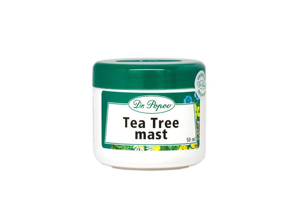V jakých případech Tea Tree mast použít: Tea Tree mast je velmi vhodná při péči o rty (např. při oparech) a k péči při plísních nehtů či plísních mezi prsty. Mast můžete používat k regeneraci pokožky podrážděné slunečním zářením, mechanickém podráždění a při různých kožních afekcích.Tea Tree mast se výborně hodí také k péči při akné – mast totiž obsahuje 4 % vysoce účinného oleje z čajovníkového stromu, který je známý svými protizánětlivými a čistícími účinky.V neposlední řadě vám mast dobře poslouží jako masážní přípravek, následná masáž příznivě působí na pohybové ústrojí. Z čeho se Tea Tree mast skládá: Základem Tea Tree masti je olej z čajovníku australského (Melaleuca alternifolia, anglicky Tea Tree), u nás méně známého jako kajeput střídavolistý. Tato rostlina roste na jediném místě ve světě, na pobřeží Nového Jižního Walesu v Austrálii. Dorůstá do výšky až 5 metrů, má husté lepkavé listy a bílé květy. Kvete na jaře.Z listů čajovníku se pomocí destilace získává pověstný olej, pro který jsou typické silné antiseptické účinky. Olej z čajovníku obsahuje řadu organických sloučenin, k těm nejdůležitějším patří cineol, terpinolen, sabinen, cymen, pinen, thujen, globulol, myrcen a další. Tea Tree olej má většinou čirou nebo nažloutlou barvu. 100% Tea Tree olej se řadí k nejsilnějším přírodním antiseptikům vůbec.Masťovým základem je čištěné vepřové sádlo (extrahované horkou párou), které svým složením připomíná lidský tuk. Vepřové sádlo obecně patří k nejkvalitnějším základům mastí: velmi dobře se vstřebává do pokožky, je kvalitním nosičem léčivých látek obsažených v bylinách a používá se k léčbě různých dermatitid. Ačkoliv se v současnosti hojně využívají různé syntetické látky, kvalitní vepřové sádlo zatím nemůže v mastech nic nahradit.V Tea Tree masti je obsažen také pravý včelí vosk – má totiž výborné ochranné a hydratační schopnosti a zvyšuje celkovou kvalitu masti. Proč obsahuje Tea Tree mast i jiné byliny: Tea Tree mast má své účinky zesíleny tymiánem – bylinou, která je známá svým silným aseptickým působením. Jak Tea Tree mast správně aplikovat: Před nanesením Tea Tree masti doporučujeme postiženou partii omýt vodou bez mýdla a dobře vysušit. Mast se nanáší v tenké vrstvě na pokožku tak, aby neucpala póry. Tea Tree mast používáme 2-3x denně (nebo dle aktuální potřeby), jemně ji vtíráme 2 až 3 minuty do kůže. Díky správné aplikaci masti pomáháte zvyšovat její účinek. Složení: vepřové sádlo, včelí vosk, Tea Tree Oil, tymián obecnýAdeps Suillus, Cera Alba, Melaleuca Alternifolia Leaf Oil, Thymus Vulgaris Flower/Leaf Oil Další informace: Tea Tree mast neobsahuje konzervanty ani umělá barviva. Tea Tree mast doporučujeme skladovat při teplotě 5 až 25 °C. Balení 50 ml.Doplňkové parametry