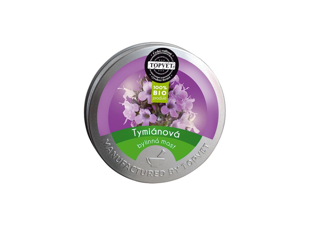 Tymián je stálezelený polokeř vyskytující se zejména v západním Středomoří. Tymián obsahuje zejména thymol, carvacrol a cymen. V přírodní medicíně je používán zejména k tlumení svědění a k urychlení hojení drobných poranění. Thymol tlumí revmatické obtíže. Aplikace v oblasti hrudníku a zad uvolňuje dýchání při chřipce a nachlazení. Použití: je vhodný pro každý typ pleti. Aplikujte dostatečné množství přímo na pokožku. Neaplikujte na sliznice a otevřené rány. Ingredients(INCI): Helianthus Annuus Seed Oil, Cera Alba, Amygdalus Dulcis Oil, Thymus Vulgaris Oil, Tocopheryl Acetate Skladování: Uchovávejte v suchu při pokojové teplotě. Neskladujte na přímém slunci. Chraňte před mrazem! Všeobecná upozornění: Nepoužívejte při známé přecitlivělosti na některou složku přípravku. Dermatologicky testované. Originální receptura.Doplňkové parametry