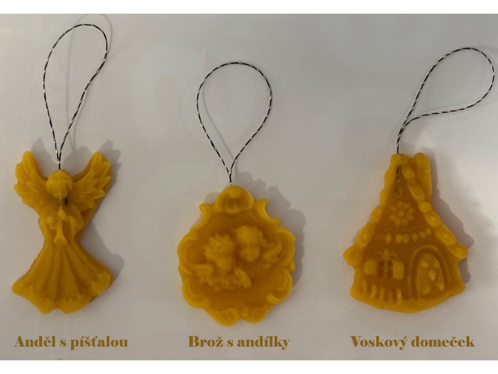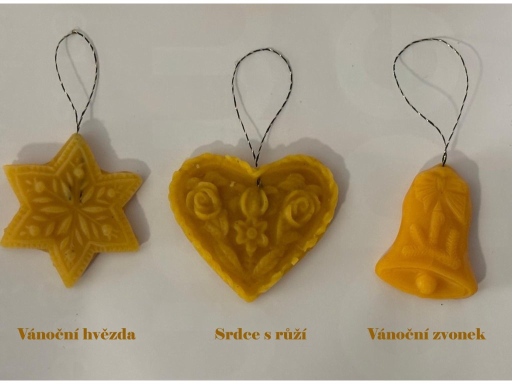 Závěsné voskové ozdoby nejen na vánoční stromeček, ale taky do místností na každodenní radost. Vhodné jako dárek ke svátku, narozeninám, k výročí.